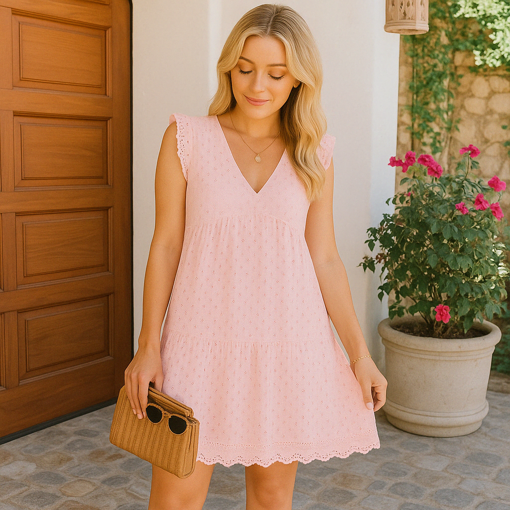 ✓ GAIE ET FÉMININE : Les petits détails crochetés, les jolies manches et le bas ondulé donnent à la robe un look doux et estival.