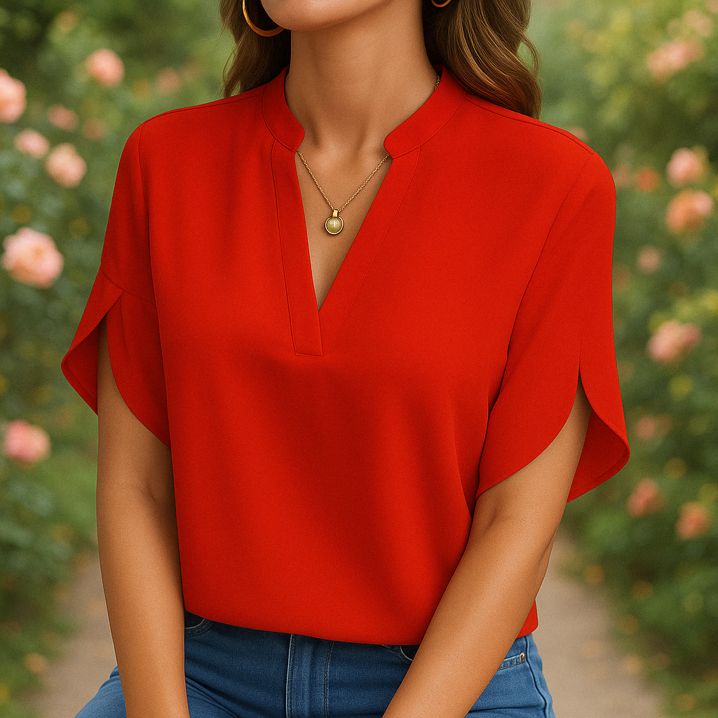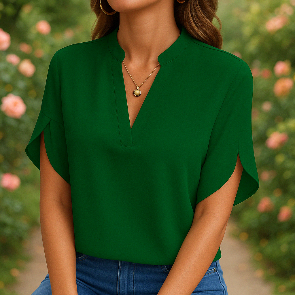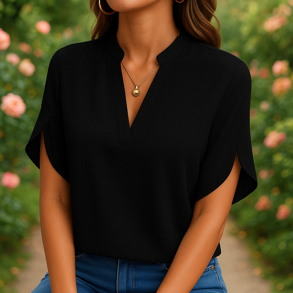✓ MINIMALISME CHIC : Le subtil col en V avec col montant et les élégantes manches fendues confèrent à ce chemisier une touche élégante et féminine qui ne se démode jamais.